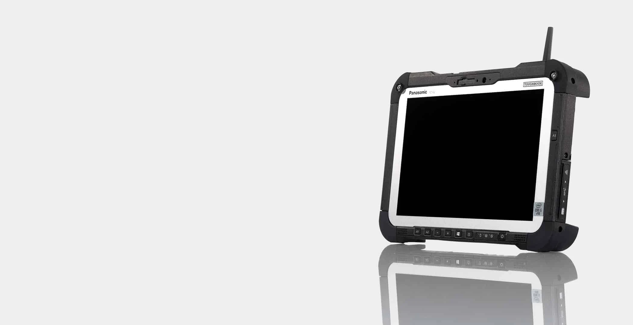 • Der Antennenanschluss ist durch die rückseitige Positionierung am TOUGHBOOK G2 geschützt; nur die Antenne ragt bei Bedarf vor.